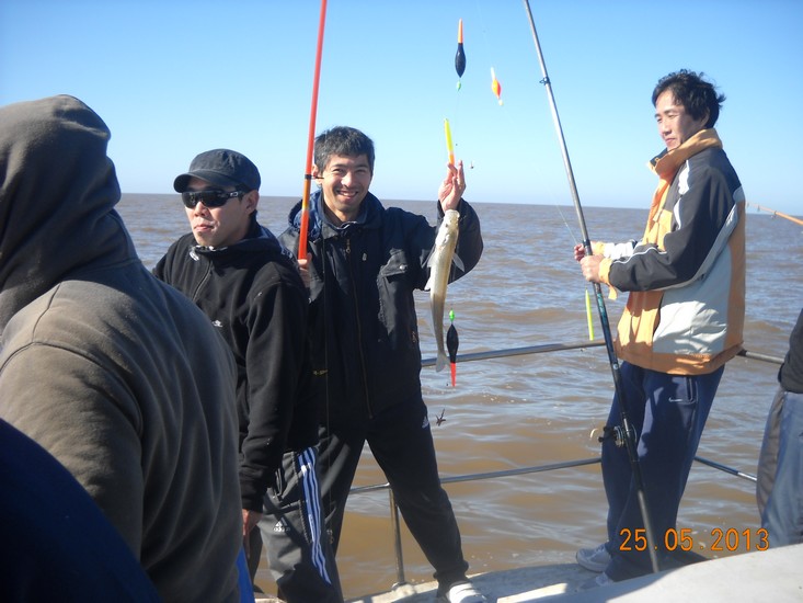 En una jornada algo movida por la mañana, con la grata compañía de Cristian y sus amigos Japoneses. Pasamos un día espectacular, con una pesca algo irregular en casi toda la zona de pesca, de todas maneras, logramos en el primer viaje de la temporada del confortable crucero Pati varias capturas de portes de muy buen tamaño de pejerreyes. Para recordar: